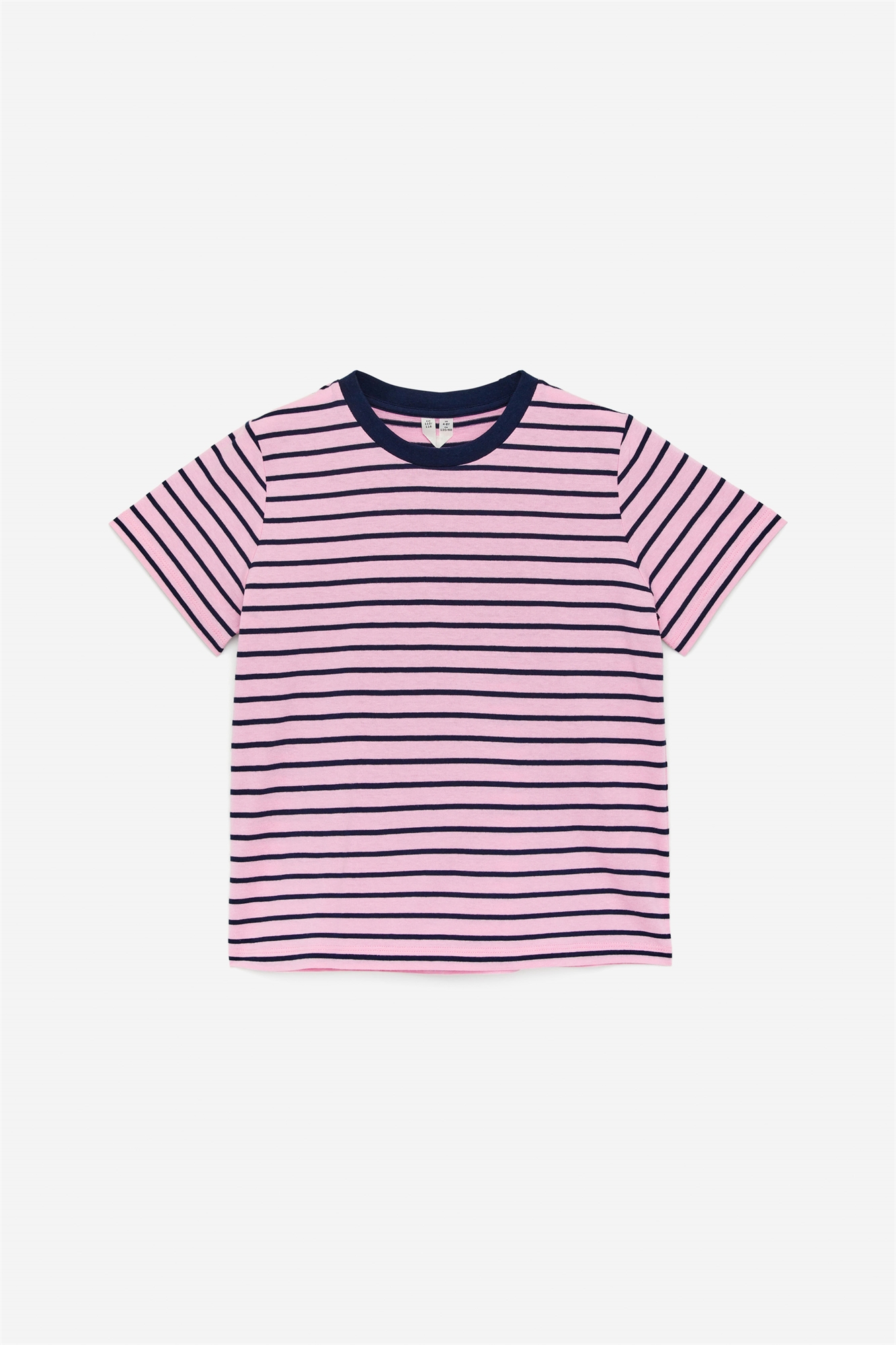 Футболка свободного покроя из гладкого хлопкового джерси. Она украшена рисунком в полоску, окрашенным пряжей, и ребристой отделкой вокруг горловины.