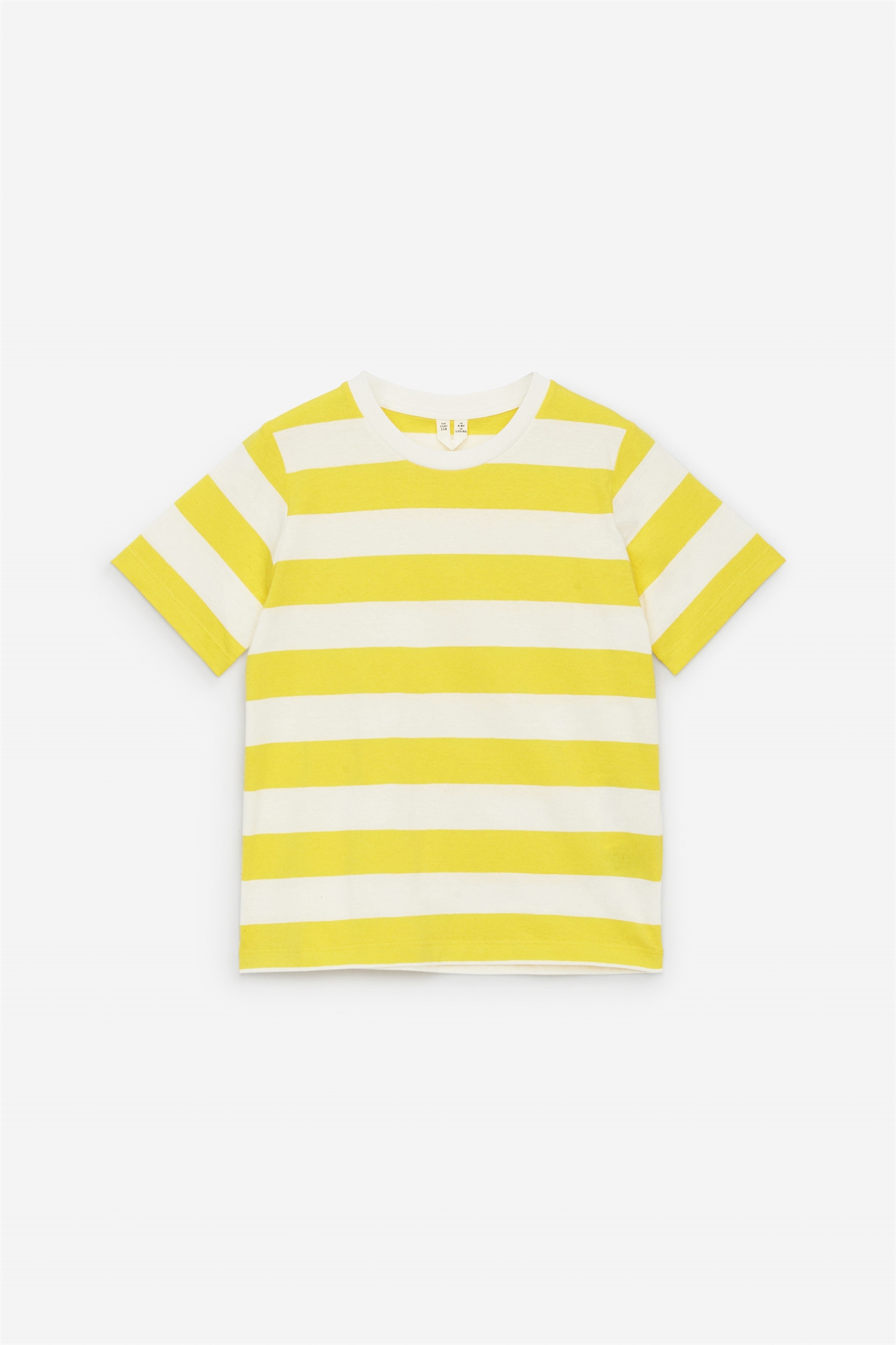 Футболка свободного покроя из гладкого хлопкового джерси. Она украшена рисунком в полоску, окрашенным пряжей, и ребристой отделкой вокруг горловины.