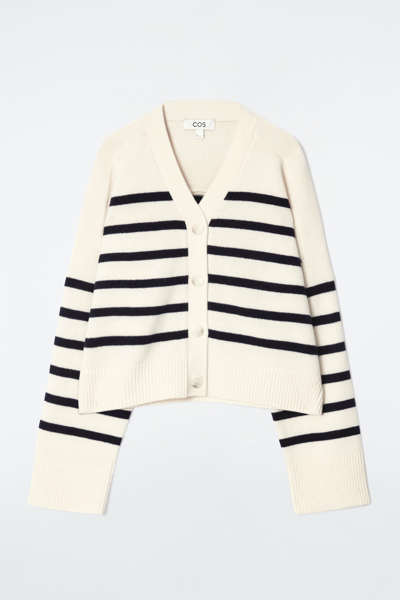 Полосатый кардиган с V-образным вырезом из мериносовой шерсти