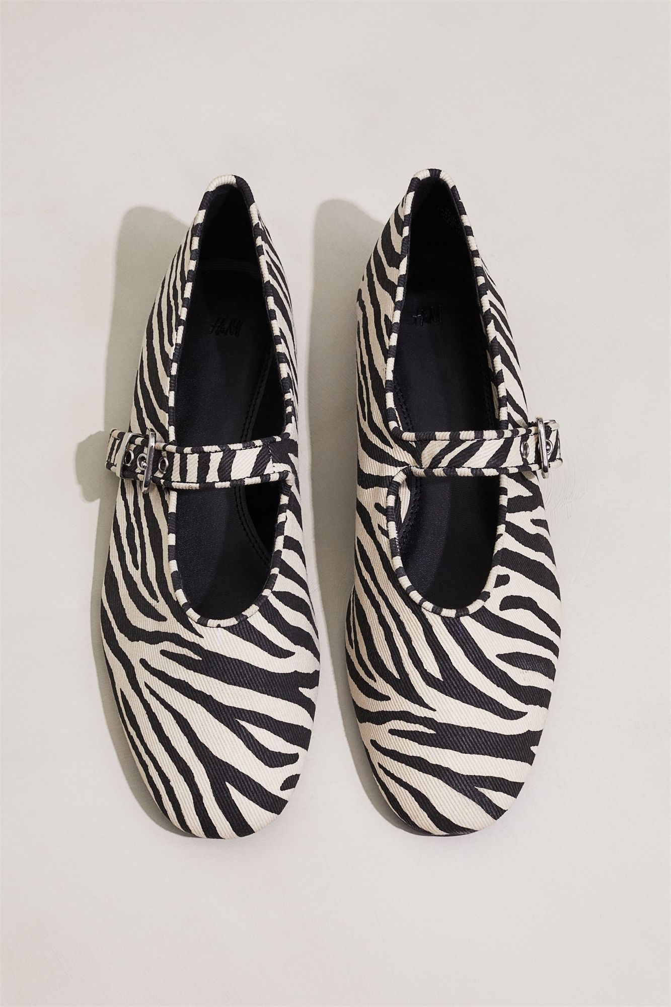 Балетки в стиле Мэри Джейн с миндалевидными носками и регулируемым ремешком на ноге с металлической пряжкой. Подкладка из джерси. Каблук 0,5 см.