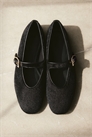Балетки в стиле Мэри Джейн с миндалевидными носками и регулируемым ремешком на ноге с металлической пряжкой. Подкладка из джерси. Каблук 0,5 см.