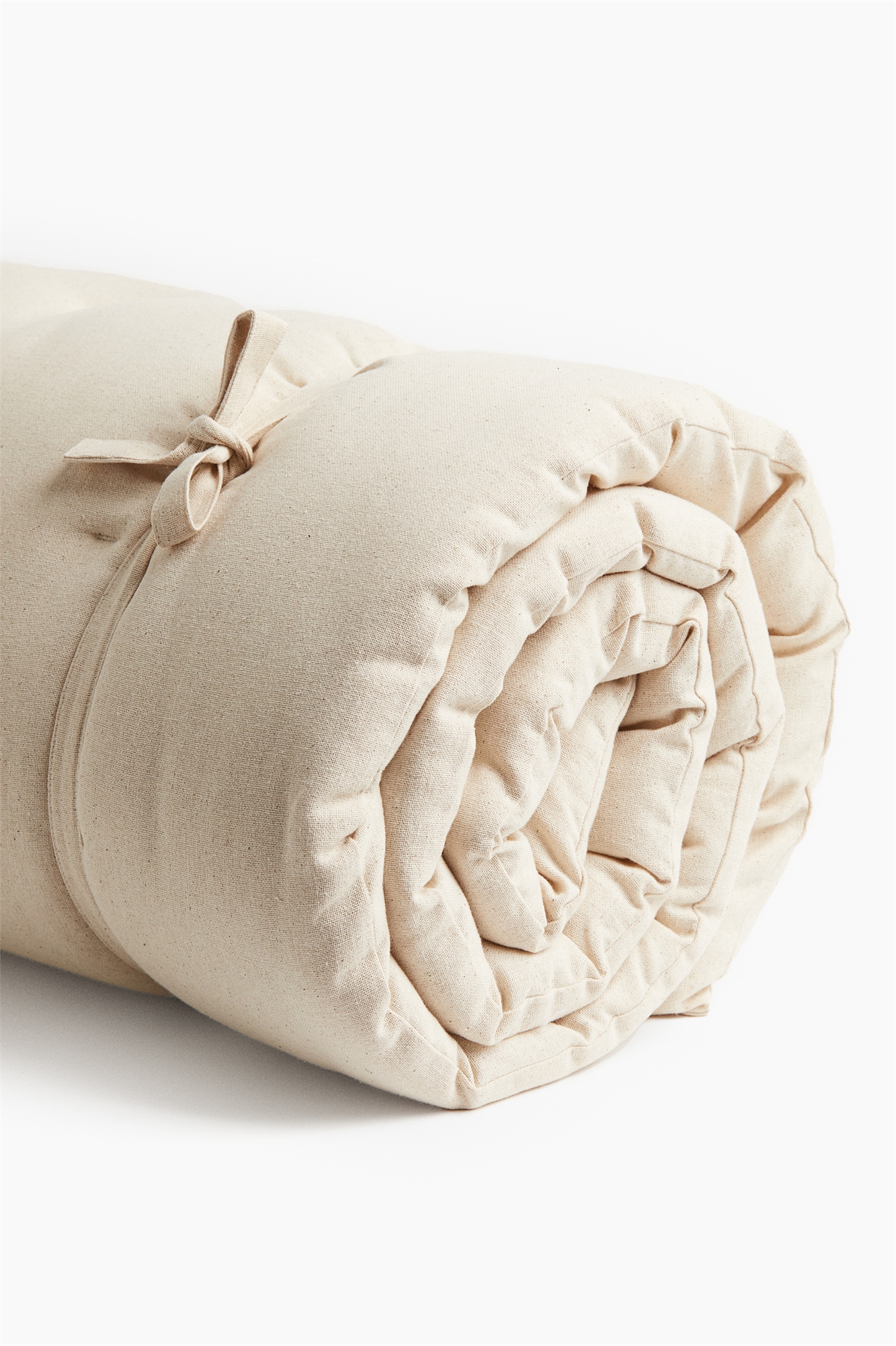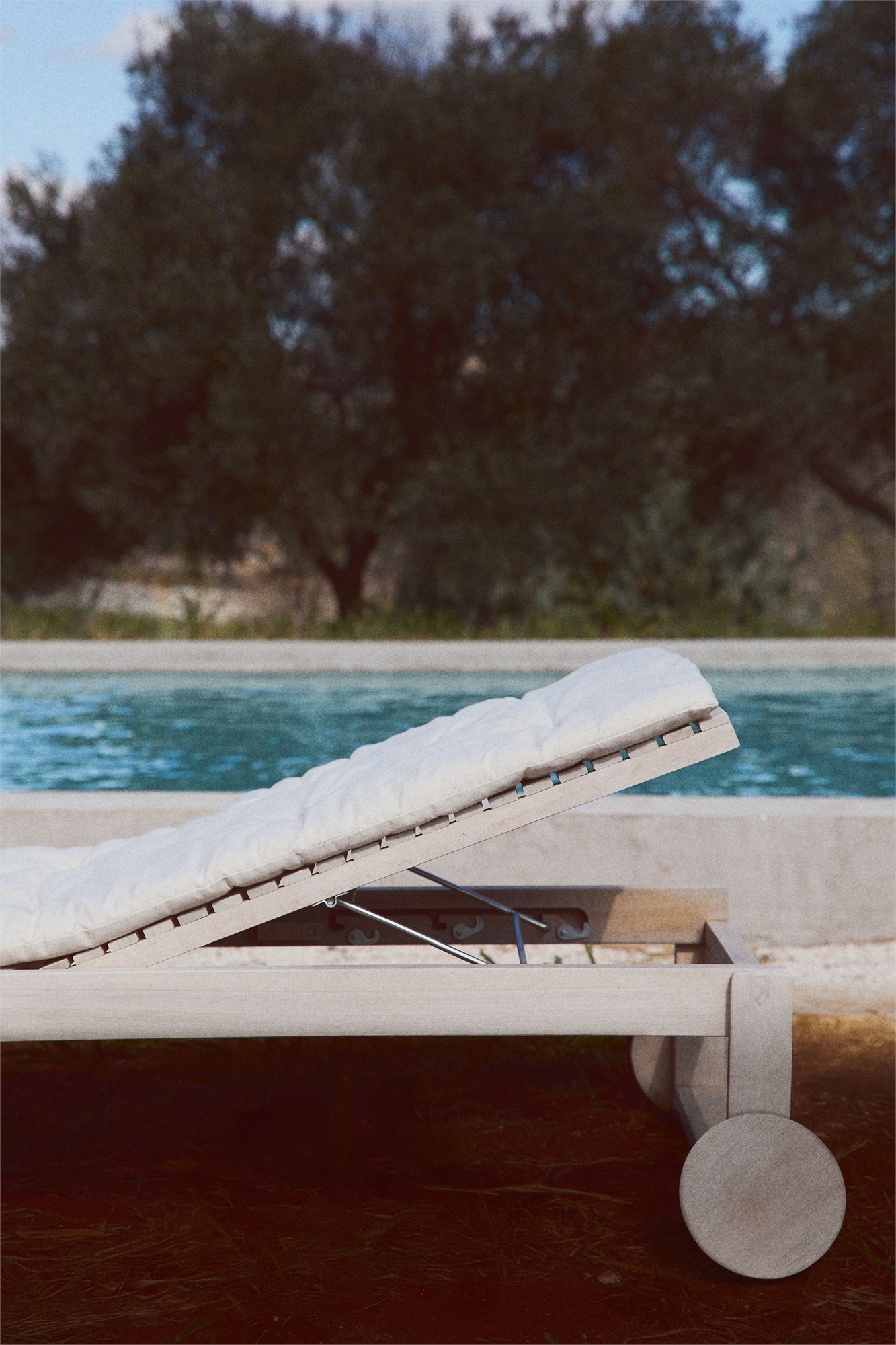 Пляжный матрас с мягкой обивкой из водоотталкивающего хлопкового полотна. Он легко сворачивается в рулон с помощью лент и имеет ручку для удобной переноски.