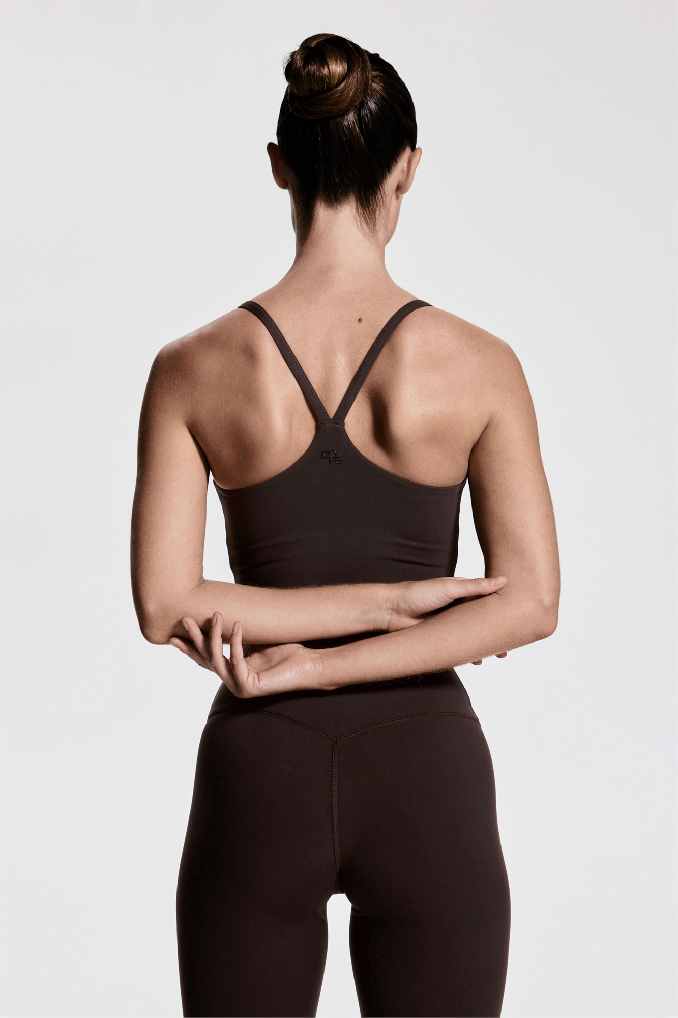 Бюстгальтер для йоги из функциональной ткани SoftMove™, обеспечивающей максимальную мягкость и комфорт, а также контурную поддержку, и DryMove™, отводящей влагу от кожи. Круглый вырез спереди, бретели и чашечки на подкладке со съемными вкладышами для регулируемой посадки и придания формы бюсту. Эластичная вставка по подолу. Средняя поддержка, подходящая для тренировок умеренной интенсивности.