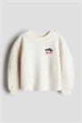 Толстовка из мягкого тедди с вышитым мотивом спереди. Круглый вырез в рубчик, спущенные плечи, манжеты и подол в рубчик.
