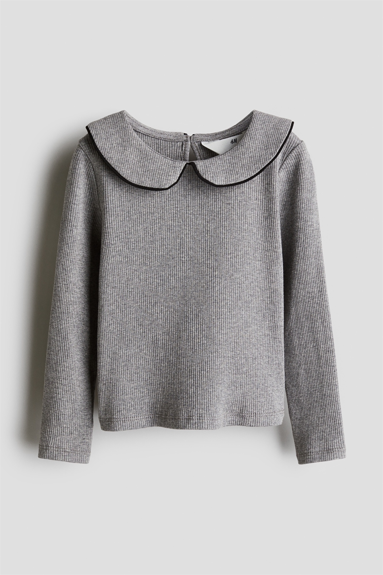 Топ с длинными рукавами из мягкого, ребристого хлопкового джерси с закругленным воротником и прорезью для ключа с пуговицей сзади.