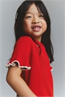 Топ из мягкого трикотажа в рубчик с воротником, застежкой на пуговицы и короткими рукавами с манжетами в рубчик.