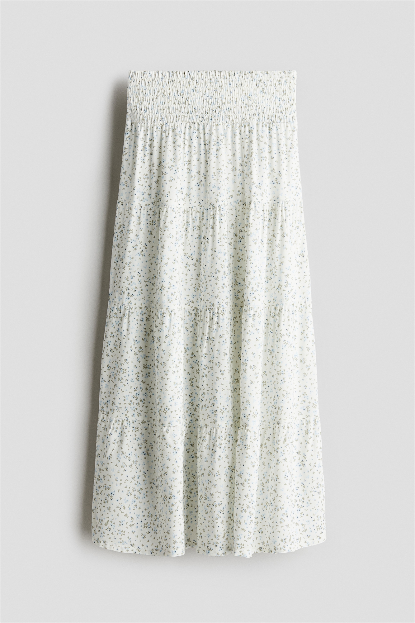 Длинная юбка из мягкого, воздушного вискозного полотна с широким швом на талии и ярусами для придания дополнительного объема.