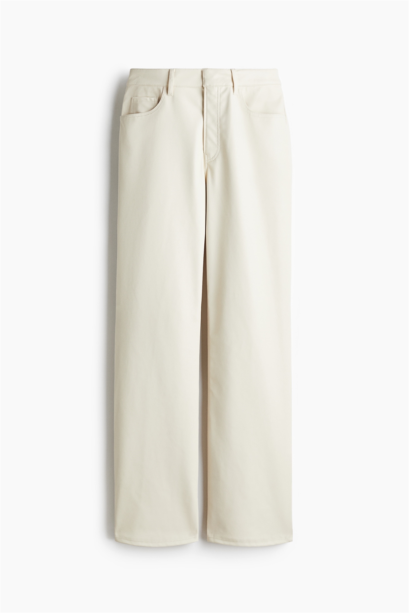 Брюки с 5 карманами из ткани с покрытием, ширинка на молнии, потайная застежка на пуговицах и крючках. Прямые ноги.
