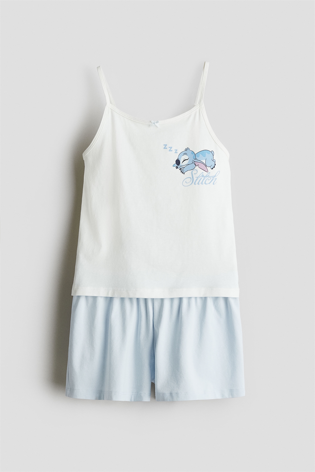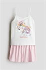 Пижама с топом на бретелях и шортами из мягкого хлопкового джерси. Топ с принтом спереди. Круглый вырез, украшенный маленьким атласным бантиком, и узкие бретели. Шорты с эластичной талией.