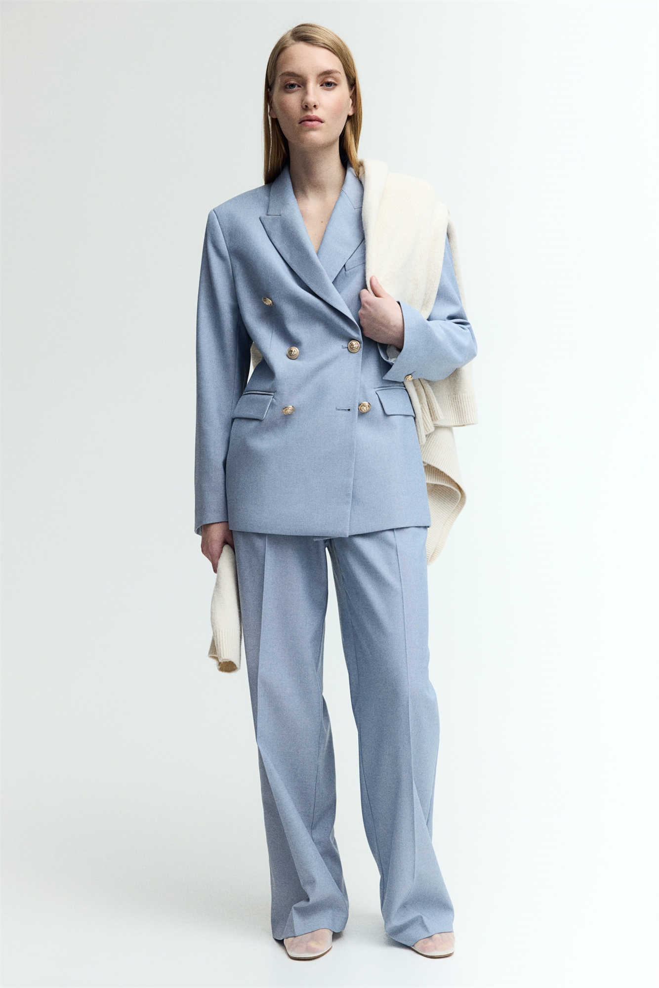 Свободные брюки свободного покроя из тканого материала с высокой талией, ширинкой на молнии и потайной застежкой на пуговицы и крючки. Диагональные боковые карманы, втачные карманы сзади и широкие ноги со складками в верхней части и складками спереди и сзади.