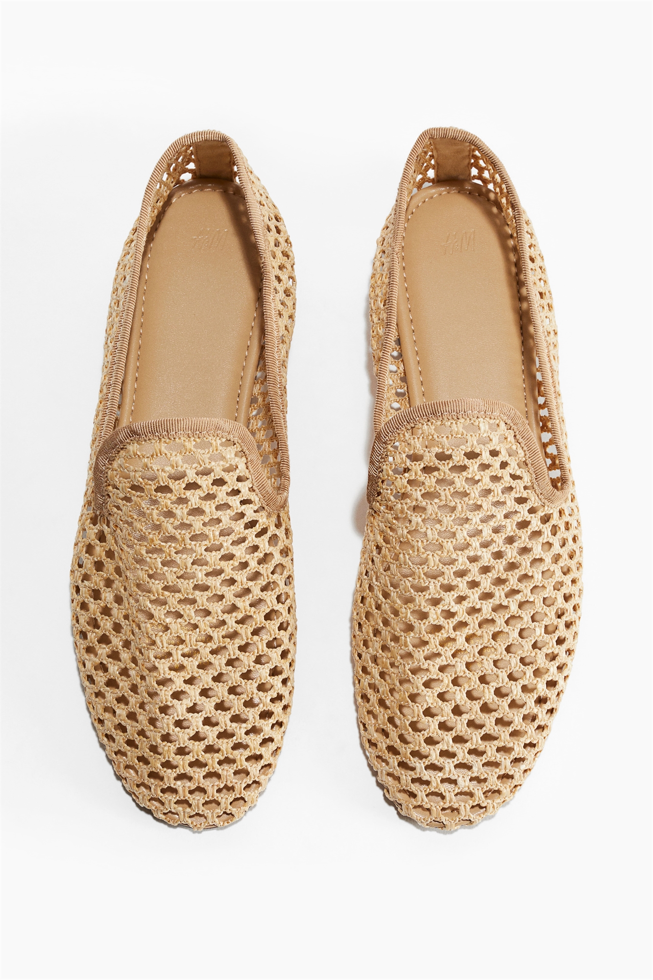 Лоферы из плетеной пластиковой соломки с ребристой отделкой вокруг отверстий.