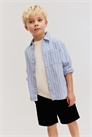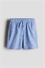 Свободные шорты длиной до колена из льна и хлопка. Эластичный пояс с завязками и фальшивая ширинка. Небрежные боковые карманы и накладной задний карман.