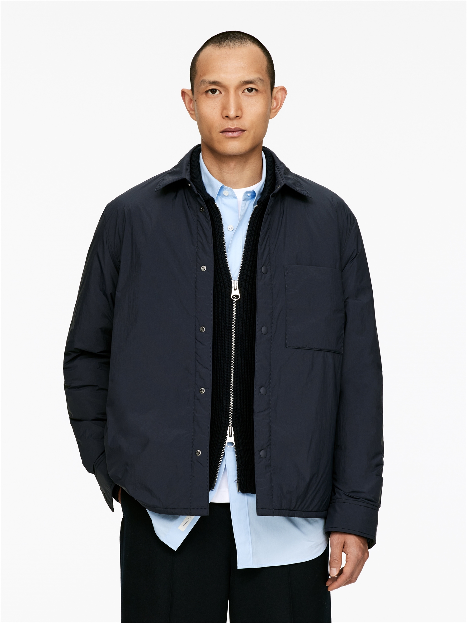 Оверсайз с легкой подкладкой, обычным воротником и застежкой на пуговицы. Один накладной карман на груди. Стеганая подкладка. Обычный крой.