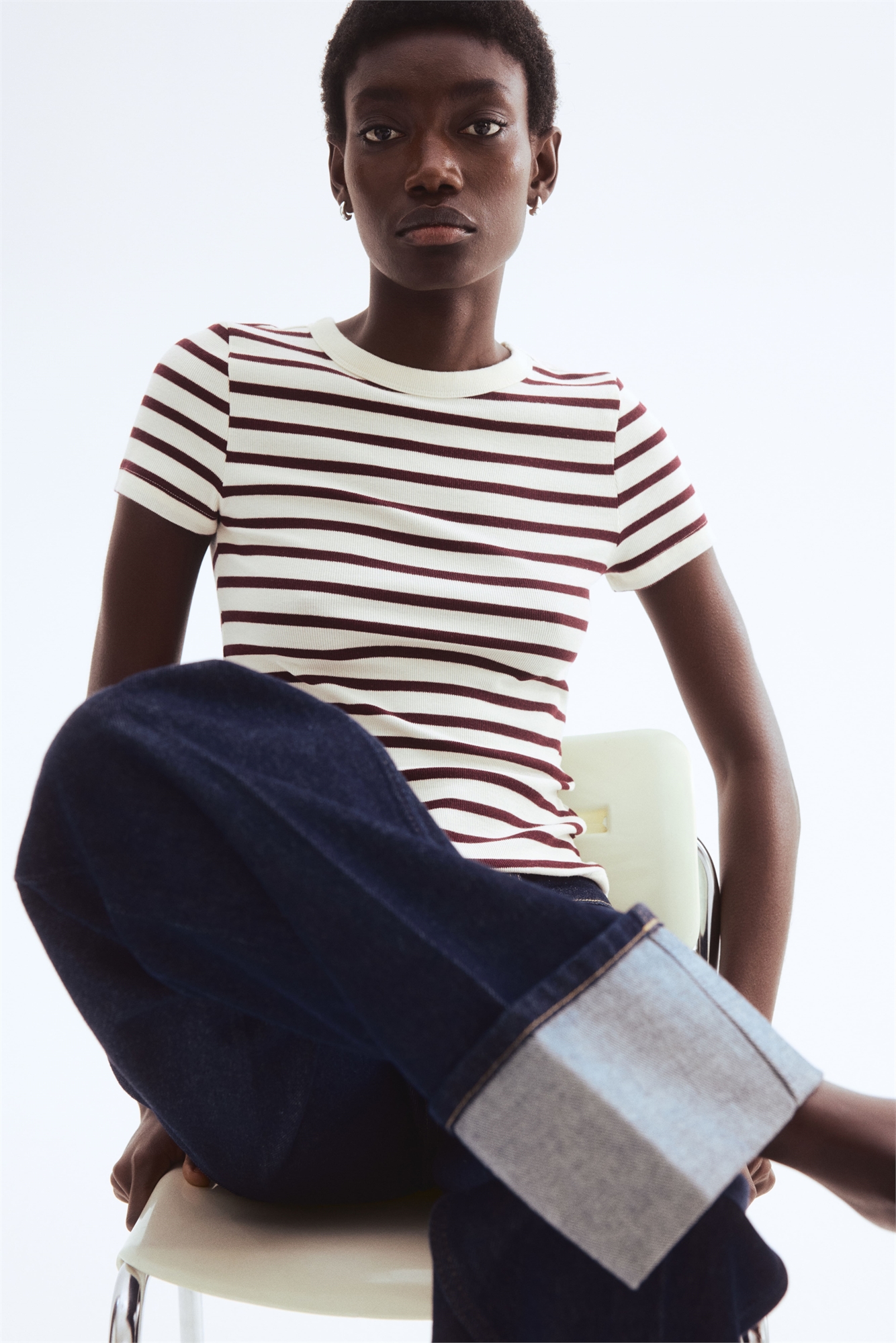 Облегающая футболка из ребристого трикотажа с горловиной и прямым покроем.