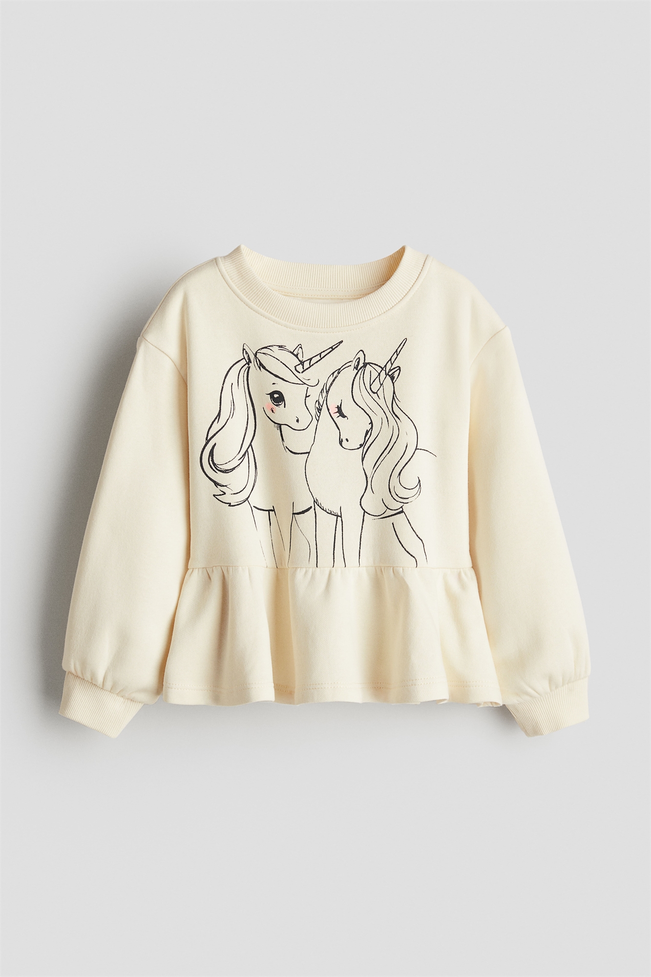 Топ из принтованной толстовки с мягким начесом внутри. Круглый вырез с ребристой отделкой, длинные рукава, манжеты в рубчик и пеплум.