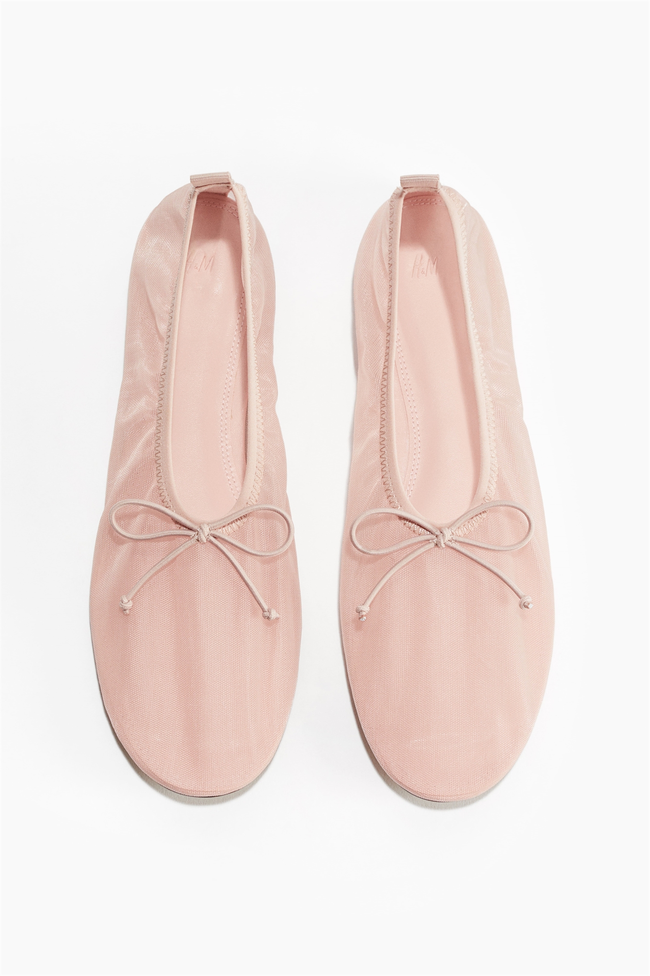 Балетки из сетки с узкой эластичной резинкой в верхней части, декоративным бантом спереди и петлей сзади.