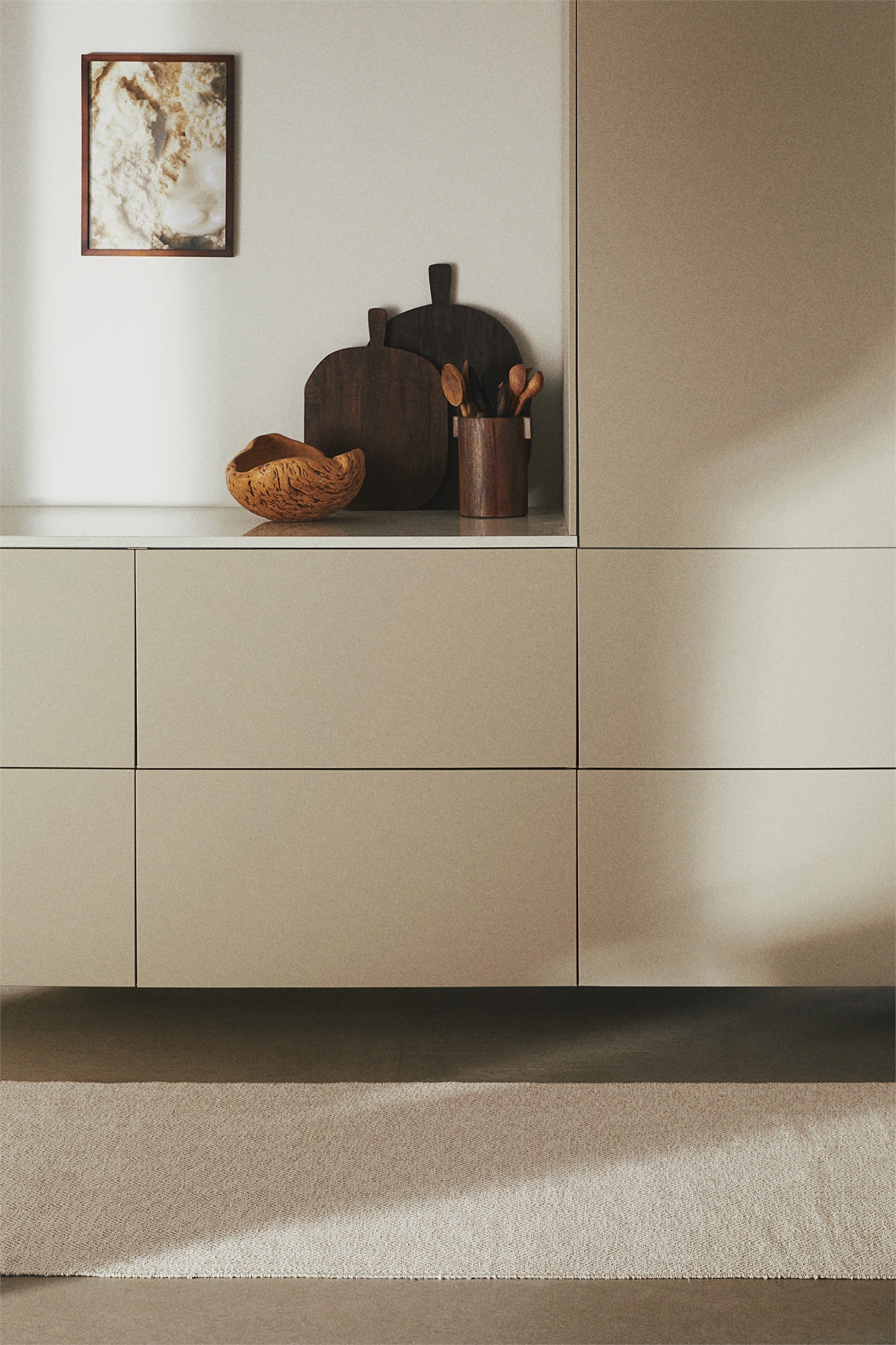 Коврик из тканого хлопка с узором "елочка" и бахромой по коротким сторонам.