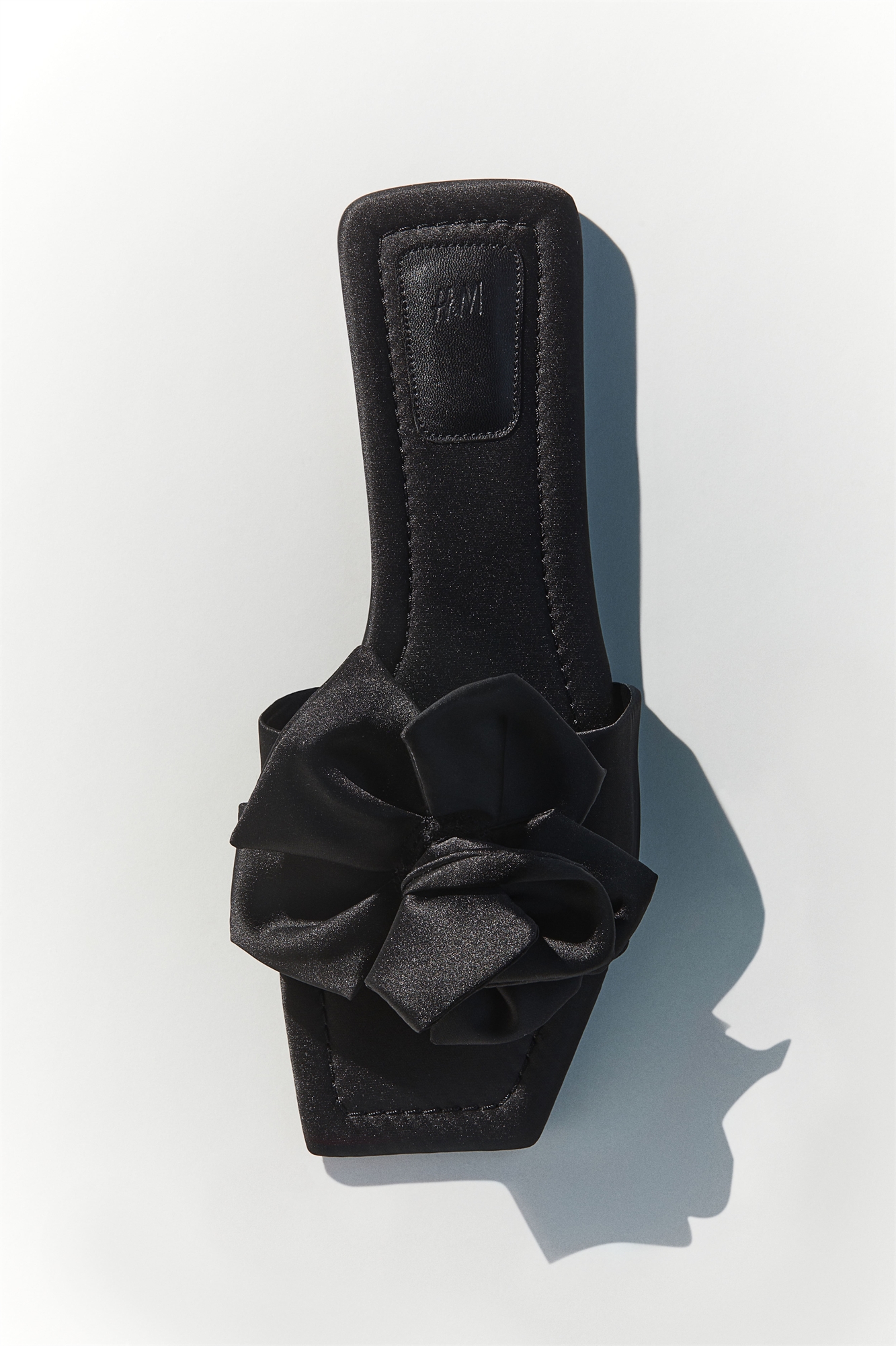 Сандалии с квадратным носком и широким ремешком с цветочной аппликацией. Атласные подкладка и стелька.