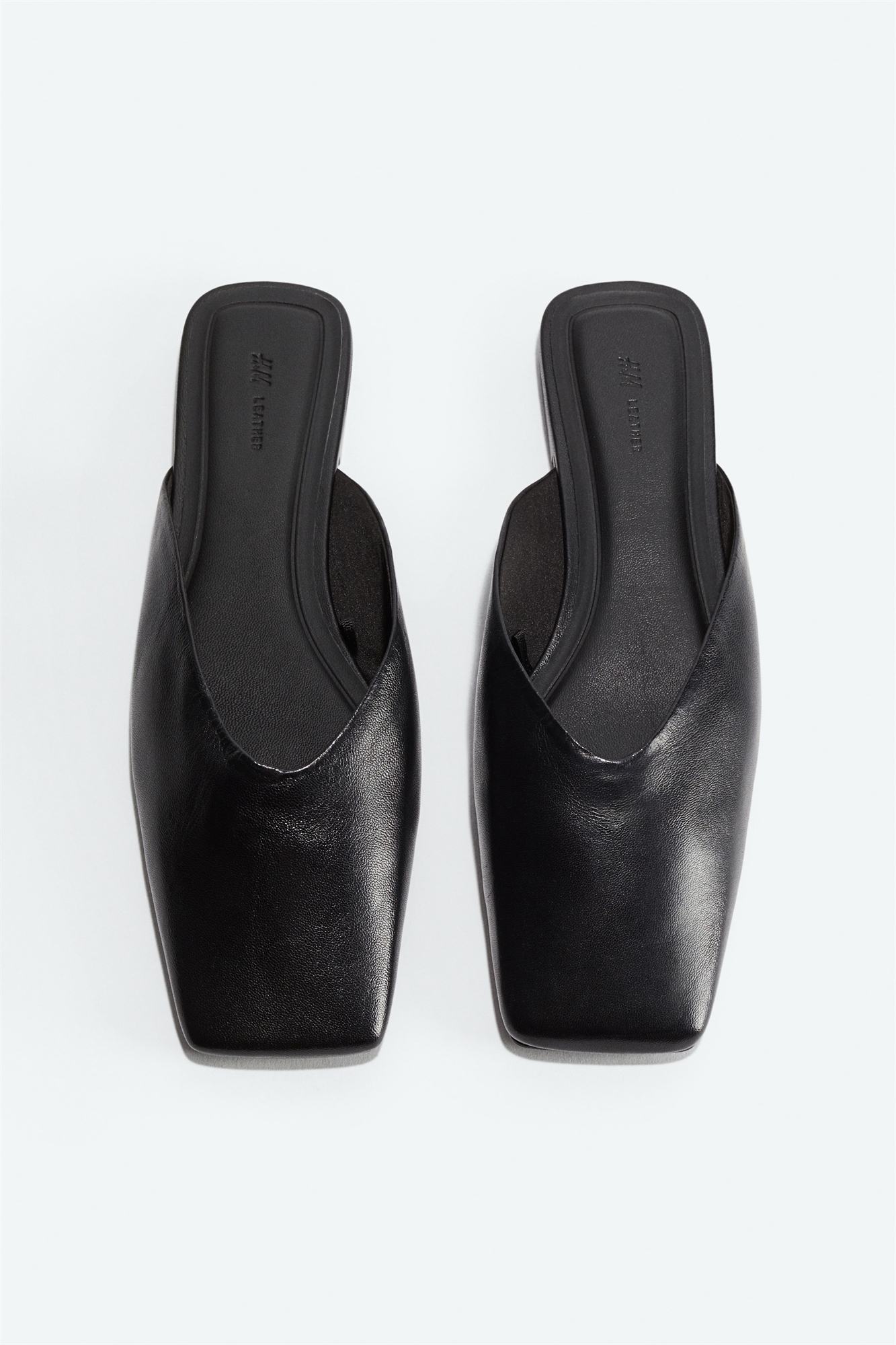 Мюли из мягкой кожи с квадратными носками. Атласная подкладка и кожаная стелька.