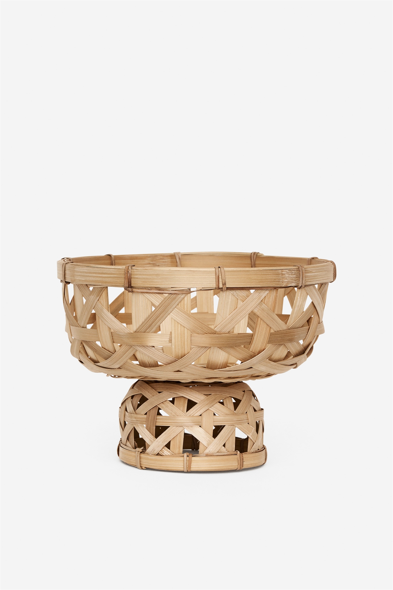 Корзина сплетена из широких бамбуковых прутьев. Идеально подходит для хранения фруктов. Диаметр 26,5 см, высота 17,5 см.