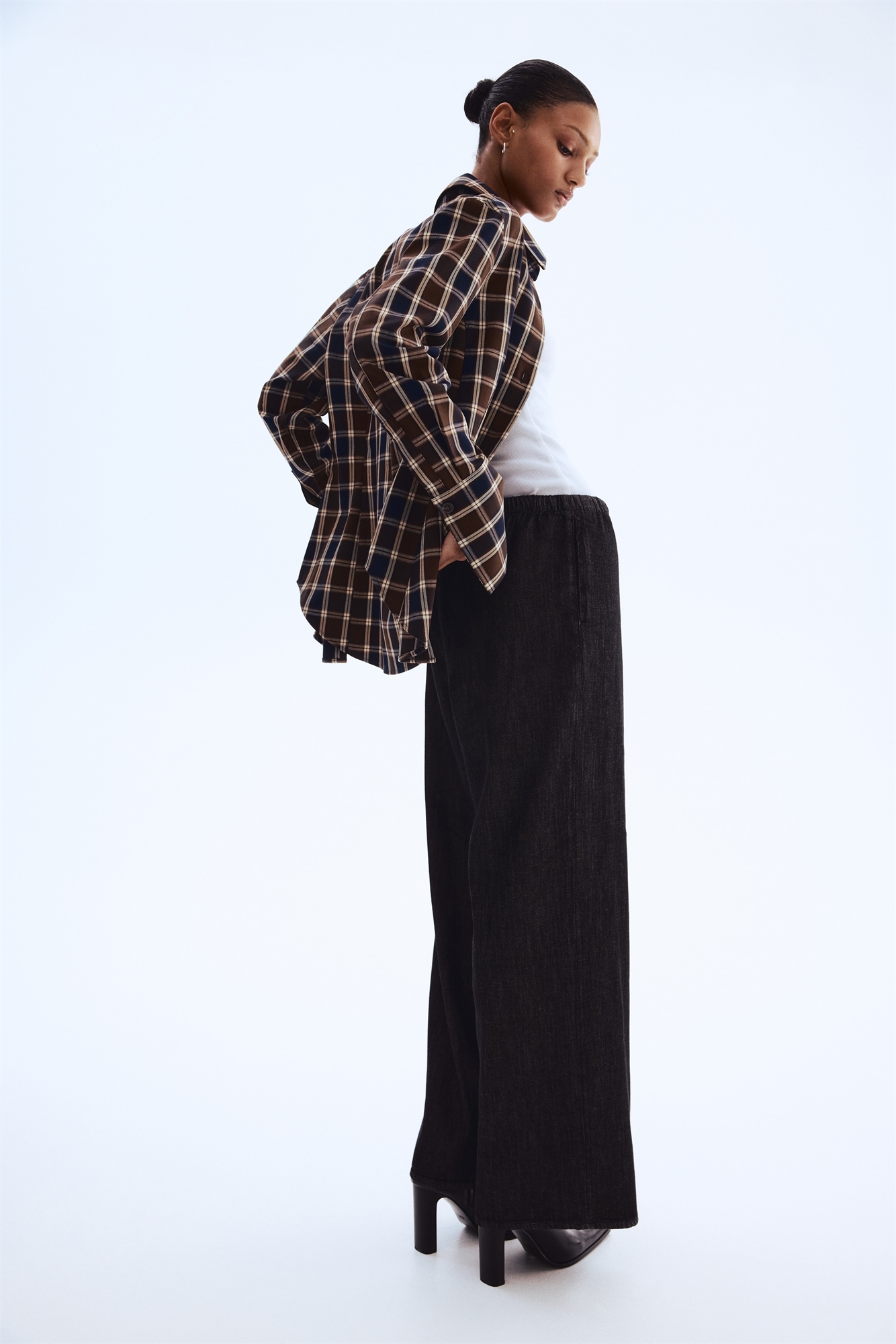 Свободные брюки из супермягкого и легкого денима с эластичным поясом на завязках, неброскими боковыми карманами и широкими штанинами.
