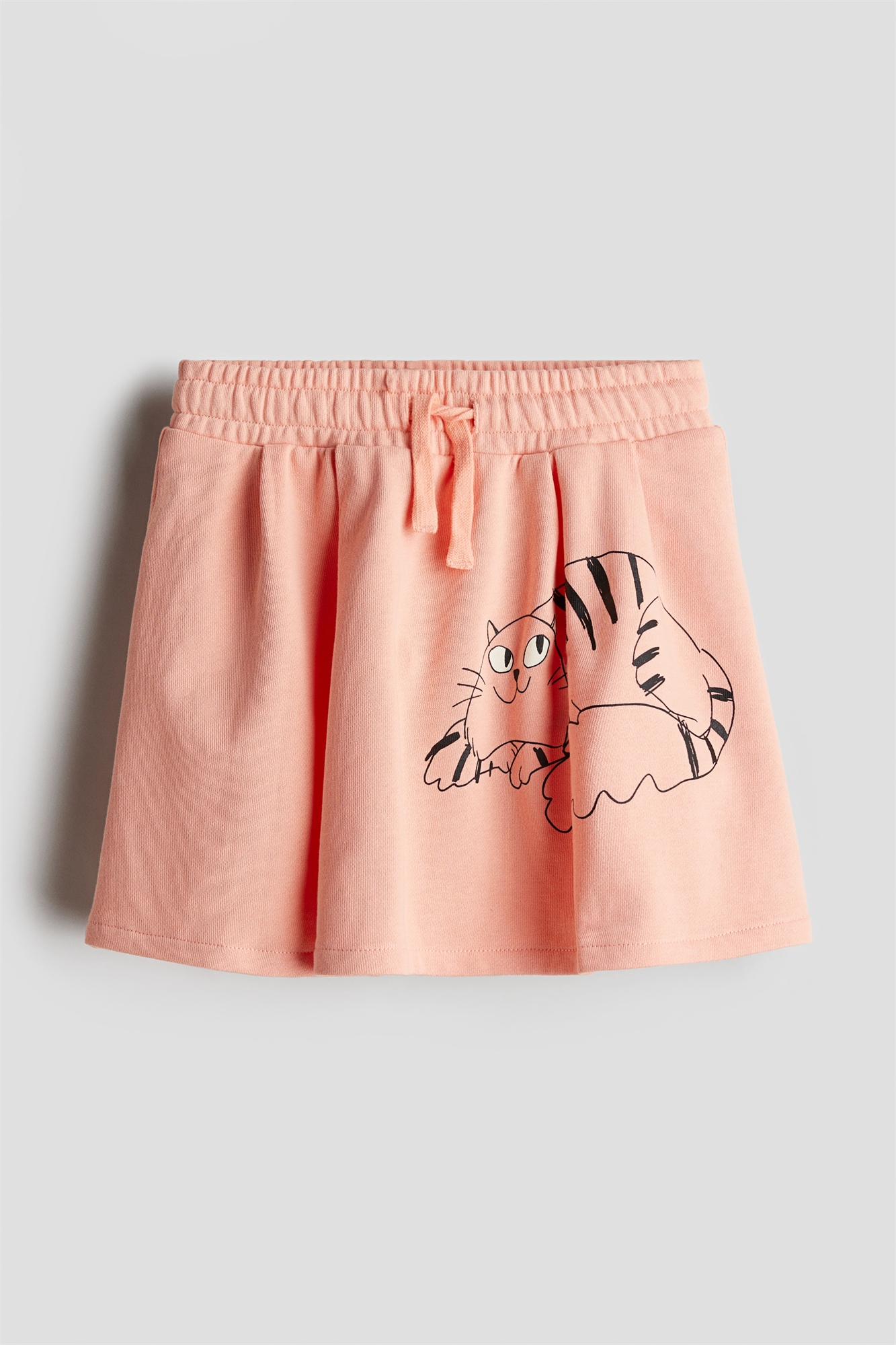 Юбка длиной до колена из легкого хлопкового свитшота с эластичной, утягивающей талией, складками и принтом спереди.