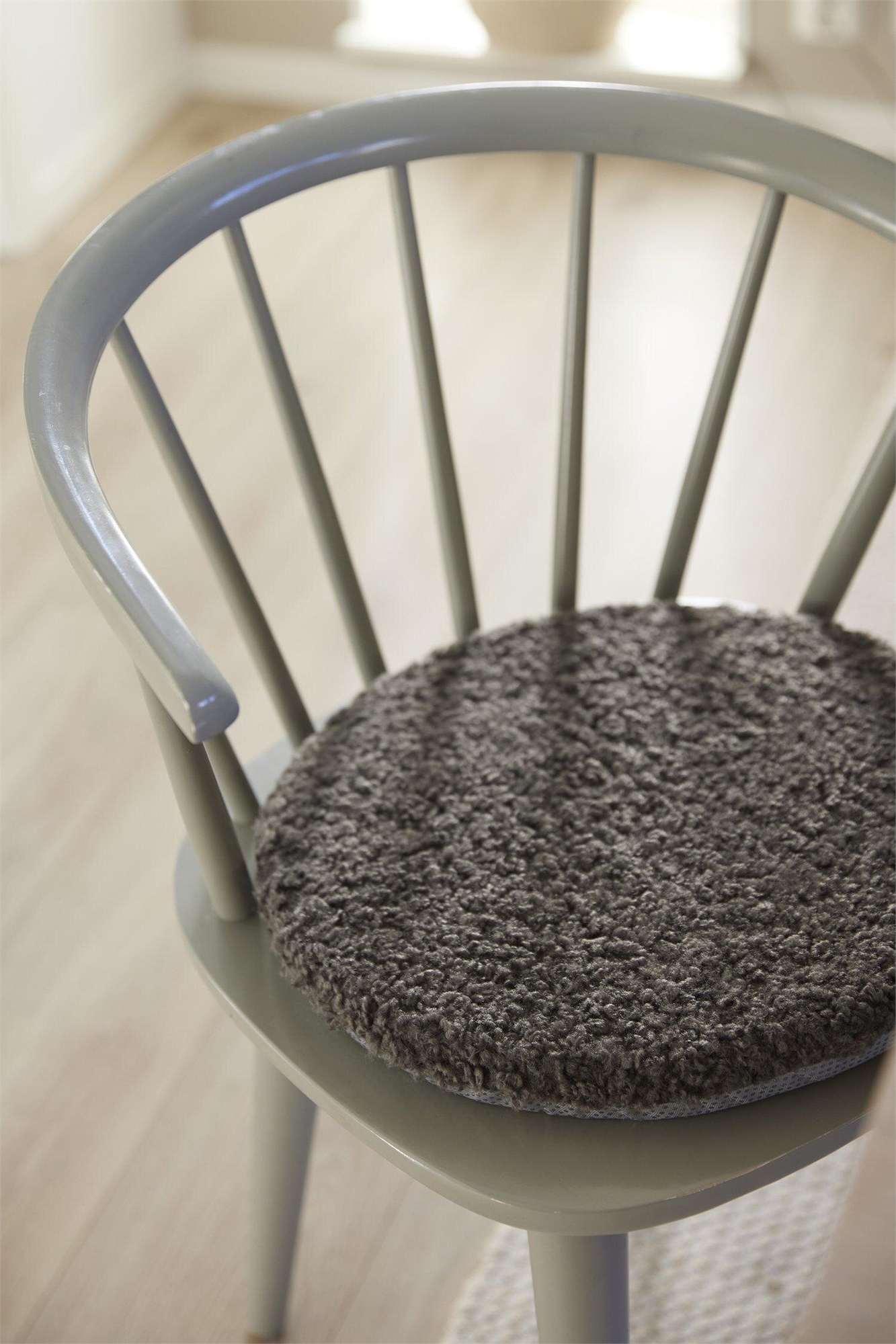 2 круглые подушки для сиденья из имитации овчины с мягкой спинкой из нескользящего материала. Застежка-молния в боковом шве. Подушка для сидения имеет диаметр 38 см и наполнена поролоновой набивкой толщиной 4 см. Изделие сертифицировано в соответствии со СТАНДАРТОМ 100 OEKO-TEX®. Этот сертификат гарантирует, что изделие прошло проверку и не содержит веществ, которые могут оказать вредное воздействие на здоровье и окружающую среду.