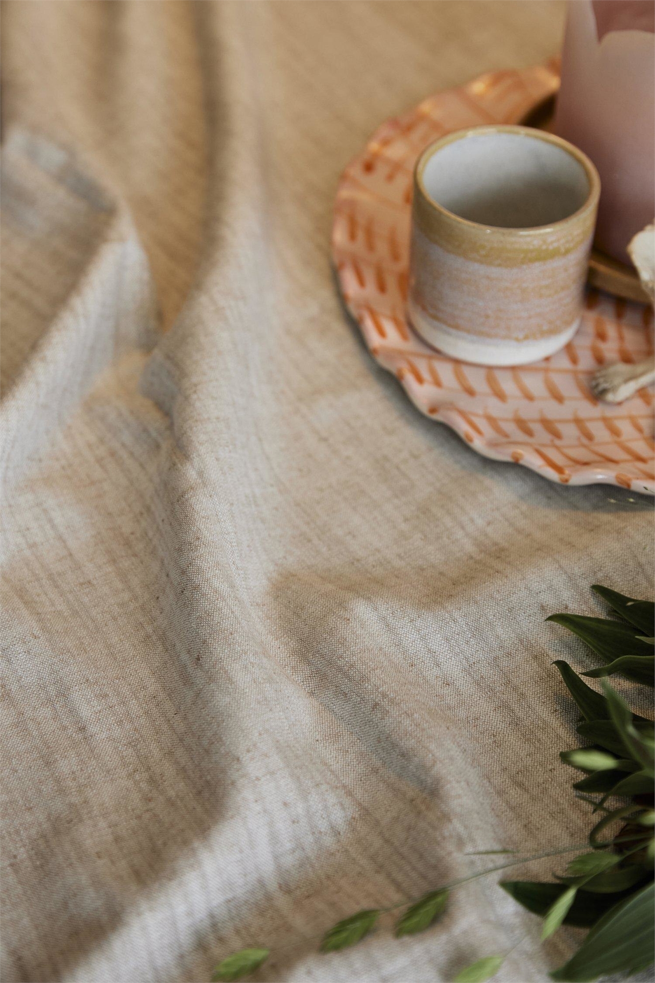 Круглая скатерть из смеси хлопка и льна. Диаметр 200 см, идеально подходит для большого круглого стола. Переплетение "шамбрай" придает ей вид, похожий на лен. Изделие сертифицировано по стандарту STANDARD 100 OEKO-TEX®. Этот сертификат гарантирует, что продукт прошел испытания и не содержит веществ, которые могут оказать вредное воздействие на здоровье и окружающую среду.
