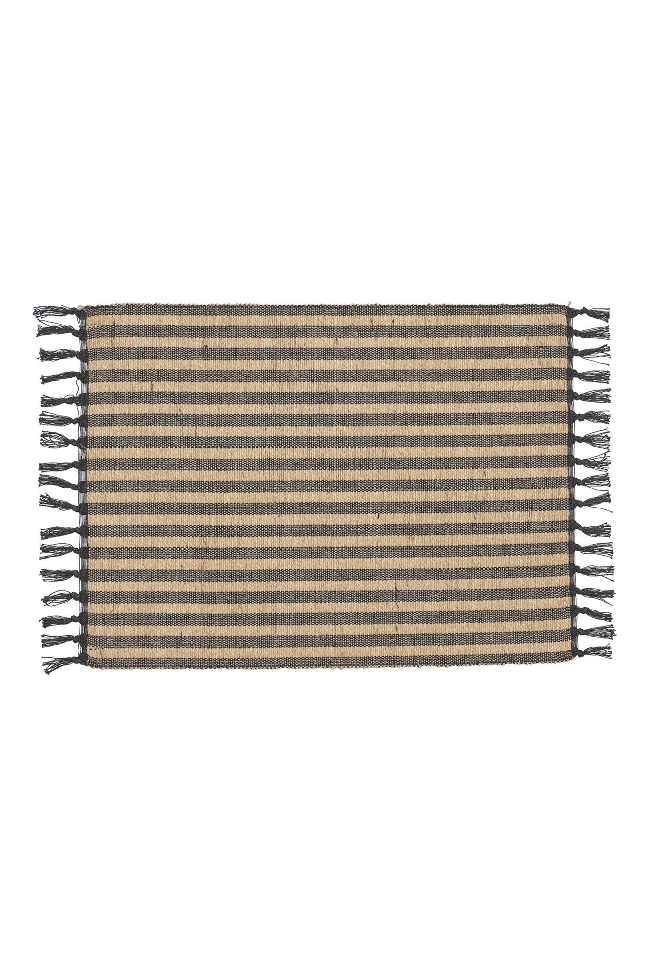 4 плетеных коврика с полосатым узором из хлопчатобумажной/джутовой пряжи с бахромой. Размер: 33 x 45 см без бахромы. Продукт сертифицирован в соответствии со СТАНДАРТОМ 100 OEKO-TEX®. Этот сертификат гарантирует, что продукт был протестирован и не содержит веществ, которые могут нанести вред здоровью и окружающей среде.