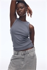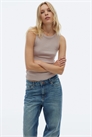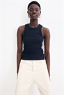 Облегающая майка из ребристого хлопкового джерси с круглым вырезом и узкой ребристой окантовкой по вырезу и проймам.