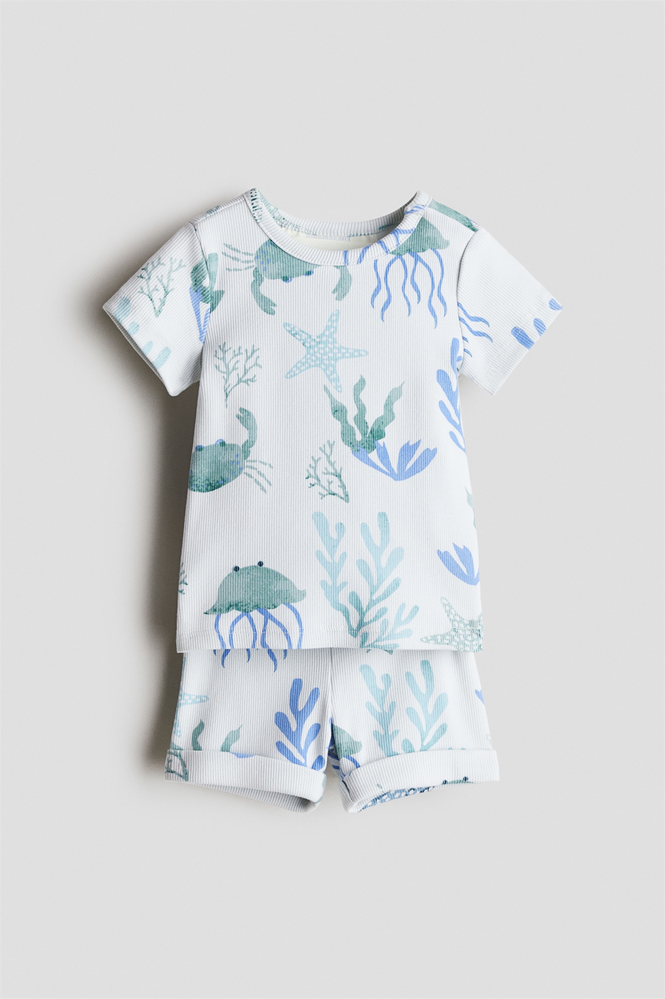 H&M Adorables. Комплект из топа и шорт из мягкого ребристого трикотажа, изготовленного из высококачественного хлопка. Топ с короткими рукавами, круглым вырезом и кнопками на одном плече (кроме размеров 2-4Y). Шорты с регулируемой эластичной талией. Наш хлопковый трикотаж имеет высокий показатель GSM, что означает более плотное и прочное качество без ущерба для комфорта. Коллекция H&M Adorables - это подборка качественных вещей с высоким уровнем комфорта, не подверженных влиянию времени.