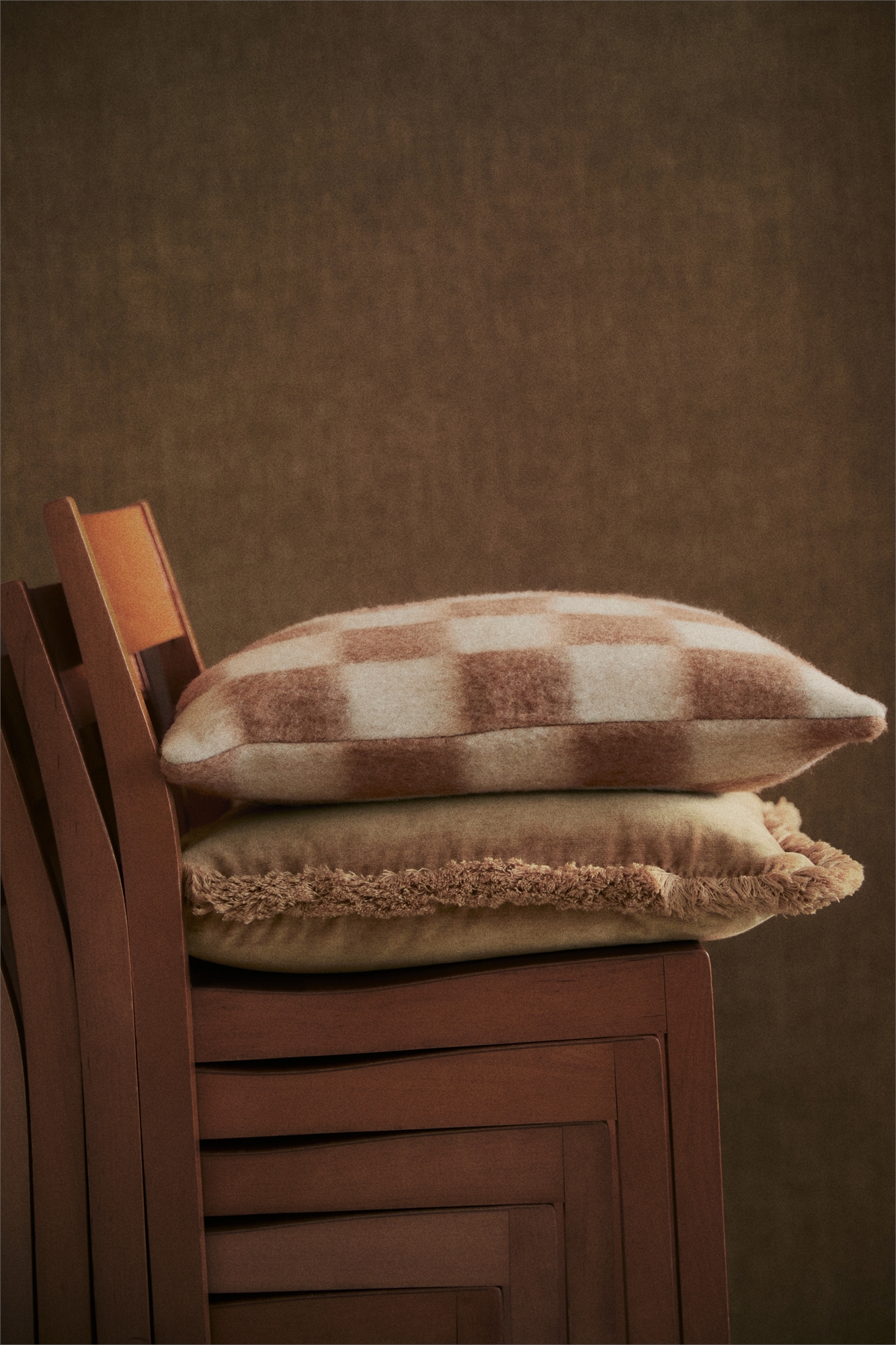 Чехол для подушки в клетку из шерстяной смеси с мягкой отделкой. Потайная застежка-молния с одной стороны.