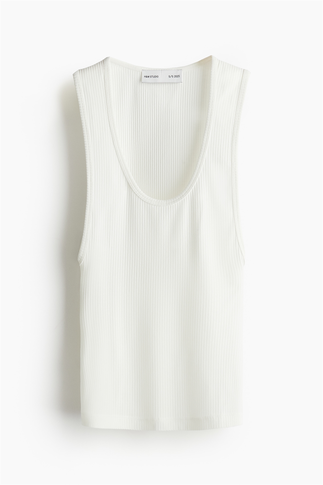 Studio Collection. Топ из ребристого вискозного джерси с глубоким круглым вырезом спереди, глубокими проймами и прямым покроем подола. Узкая окантовка по вырезу горловины и проймам.