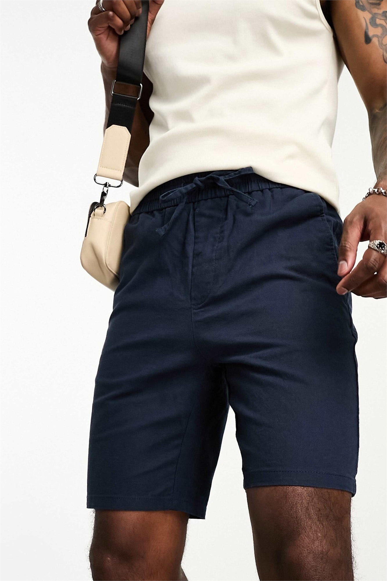 Шорты из смешанного льна с завязками на талии