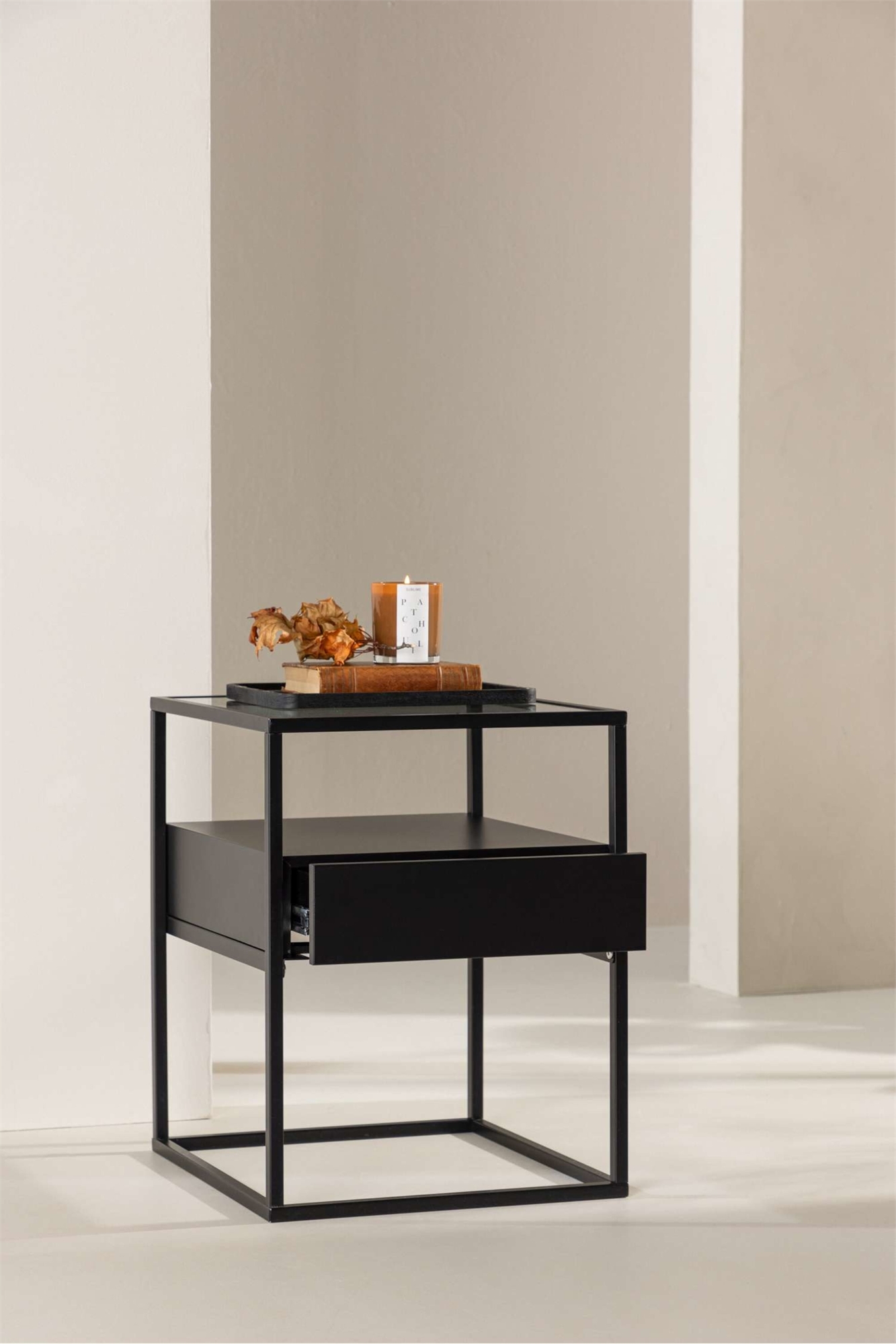 Обновите свой интерьер с помощью элегантного современного приставного столика из нашей серии Fortaleza! Он не только придаст изысканность вашему интерьеру, но и станет отражением вашего личного стиля и чувства моды.Этот приставной столик имеет стеклянную столешницу и стальной каркас. Для практичного хранения вещей этот приставной столик оснащен выдвижным ящиком и полками, которые обеспечивают как скрытое, так и видимое хранение. Больше никакого беспорядка - храните свои вещи организованно и украсьте их красивым подсвечником или любимой книгой для придания уюта и индивидуальности. L40 W40 H51
