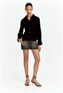 Приталенная рубашка воздушного плетения из смеси льна и вискозы. Воротник, застежка на пуговицы спереди, передняя панель и накладной нагрудный карман. Длинные рукава с манжетами на пуговицах. Сборки по бокам создают эффект легкой драпировки.