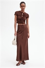 Длинная юбка с воздушным переплетением из смеси вискозы и льна. Эластичный пояс с завязками и прямой подол. Без подкладки.