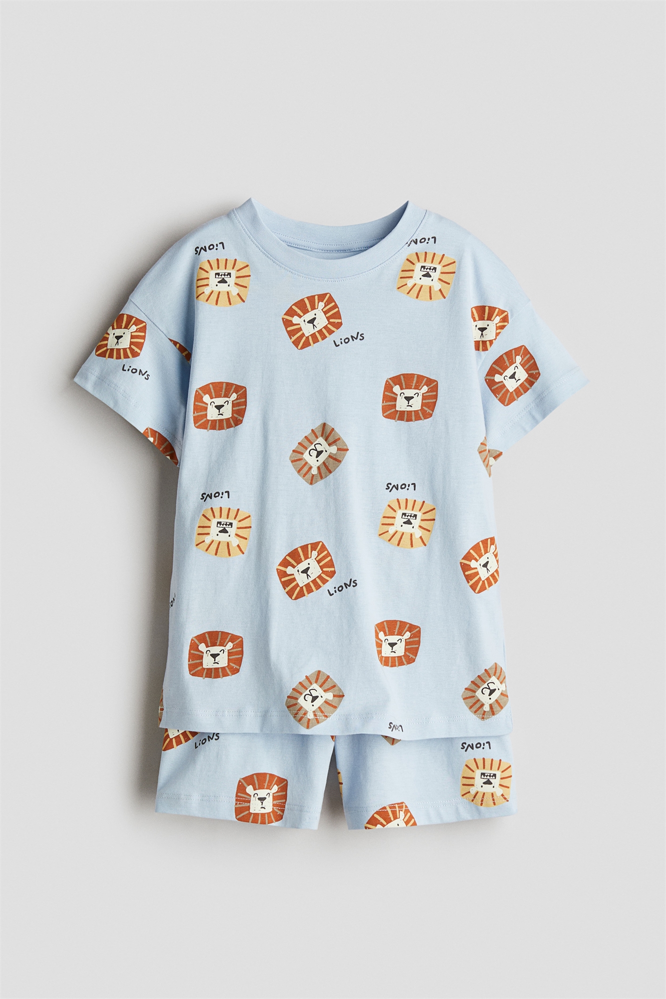 Пижама из мягкого хлопкового джерси с набивным рисунком. Топ с короткими рукавами, круглым вырезом с ребристой отделкой и спущенными плечами. Шорты с эластичной талией.
