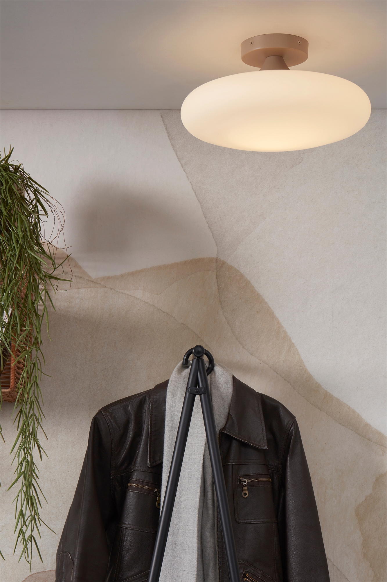 Потолочный светильник Sapporo излучает простоту и ретро-шарм благодаря своему незамысловатому дизайну. Светильник песочного цвета размером 34x18,5x34 см придает мягкий и неподвластный времени оттенок благодаря молочно-белому стеклу. Благодаря своей простой эстетике этот потолочный светильник легко впишется в любой интерьер. В этом светильнике легко сочетаются функциональность и стиль, что делает его универсальным выбором для освещения и украшения различных помещений в доме. Напряжение: 230 В/50 Гц, Мощность: 60 Вт Размер: 34 x 18,5 x 34
