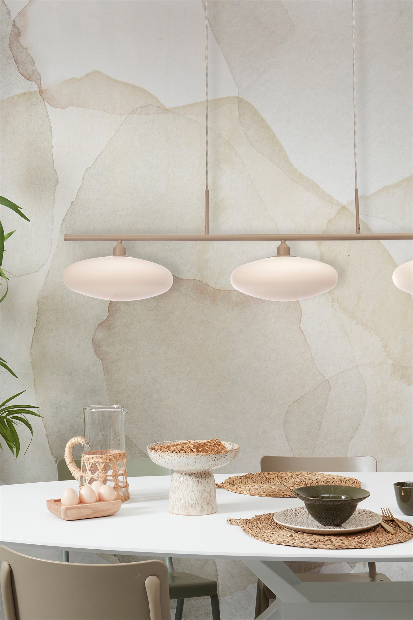 Трехпанельный подвесной светильник Sapporo с сочетанием молочно-белого стекла и матового песочного покрытия придает элегантность ретро и распространяет мягкое свечение. Имея внушительные размеры 115x29x23 см, эта лампа займет свое место над обеденным столом, где она не только выполняет функцию функционального освещения, но и делает стильное заявление благодаря уникальному сочетанию текстур и оттенков. Пусть ваша комната сияет, ведь лампа - это больше, чем просто свет. Это выражение вашего уникального стиля. Напряжение: 230 В/50 Гц, Мощность: 60 Вт Размер: 115 x 29 x 23