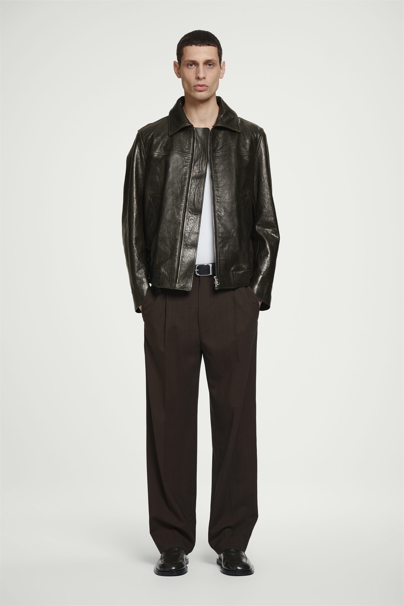 Подиумная коллекция COS SS25 основывается на кодах дома - долговечном дизайне и исключительном мастерстве. В этом сезоне команда дизайнеров исследует спокойную эволюцию знаковых вещей гардероба – таких, как эта кожаная куртка. Она сшита из эластичной бесхромовой кожи ягненка насыщенного цвета глубокого хаки, который с возрастом приобретет уникальную патину. Модель имеет ребристый кожаный подол, двустороннюю молнию и удлиненный штормовой клапан сзади. Regular fitTwo-way zip closureQuilted liningCOS поддерживает ответственное производство через Leather Working Group Shell: 100% Leather (Lamb). Подкладка: 100% NAIA™ ацетат целлюлозы. Без учета отделки / Специализированная чистка Длина по спинке для размера M составляет 69,3 см / Модель носит размер M