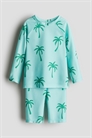 Комплект из плавательного топа и плавательных шорт из принтованной ткани с защитой от ультрафиолета UPF 50. Топ с круглым вырезом и длинными рукавами реглан, чтобы свести к минимуму риск трения по швам. Шорты с эластичной талией.