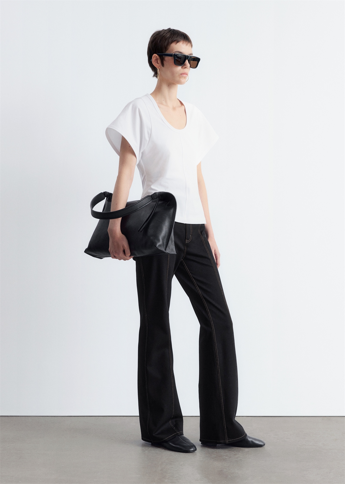 Эти зауженные брюки с высокой талией и расклешенными ногами с контрастными деталями в виде швов изготовлены из прочного джерси с легким стрейчем. Модель дополнена двумя накладными карманами сзади, карманами в боковых швах и ширинкой на молнии с застежкой на крючок и планку. Длина по линии бедра: 80 см / 31,4 дюйма (EU 38 / UK 10 / US 6)
