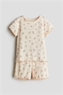 Пижама с принтом из мягкого хлопкового пуантельевого трикотажа с отделкой оверлоком. Топ с короткими рукавами и круглым вырезом с кружевной отделкой и шорты с эластичной талией.