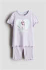 Пижама из мягкого хлопкового джерси с набивным рисунком и отделкой оверлоком. Длинный топ с круглым вырезом и короткими рукавами. Шорты длиной до колена с эластичной резинкой на талии.