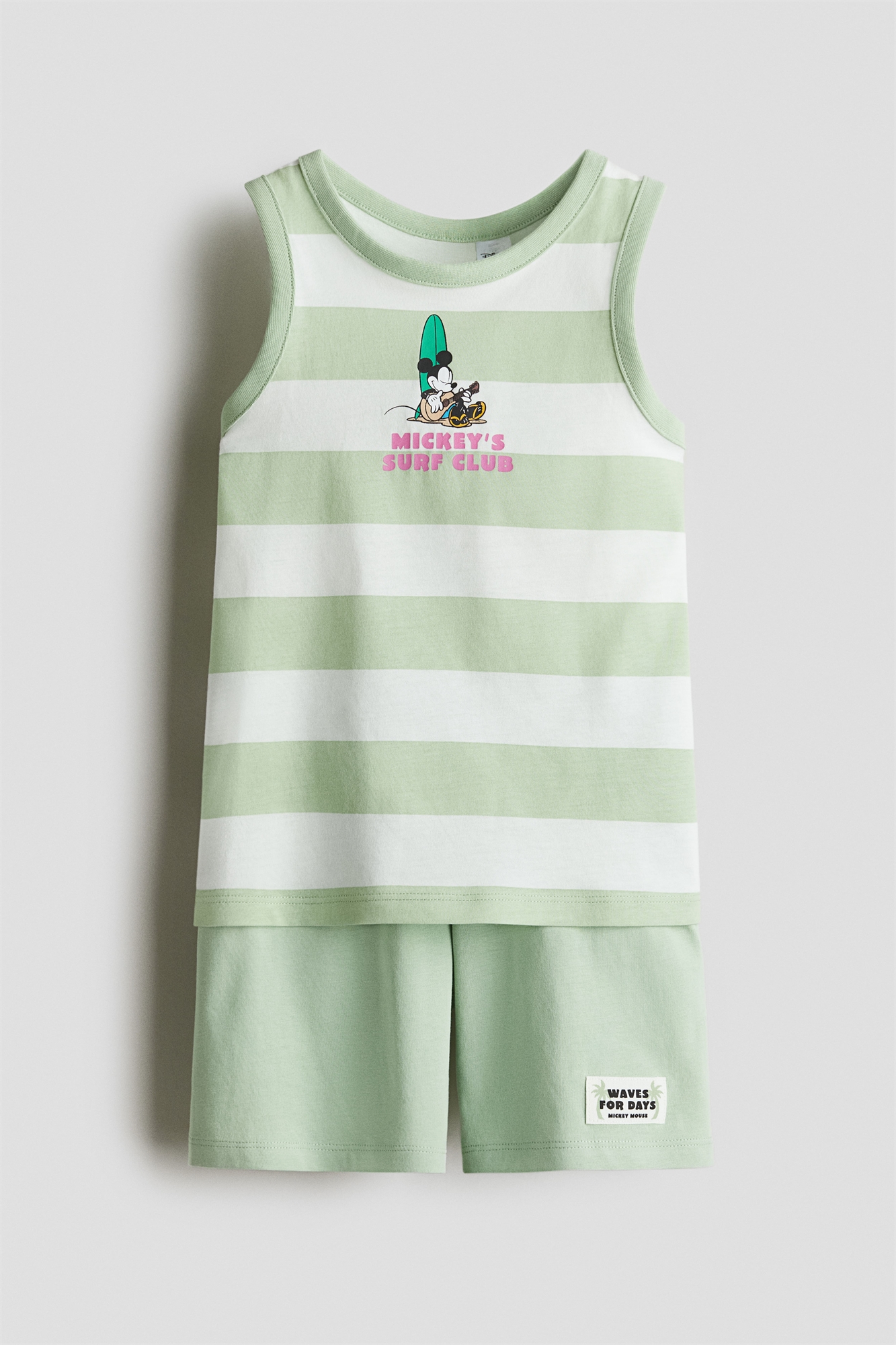 Пижама с жилетом и шортами из мягкого хлопкового джерси. Жилет с принтом спереди и отделкой по вырезу горловины и проймам. Шорты с эластичной резинкой на талии.