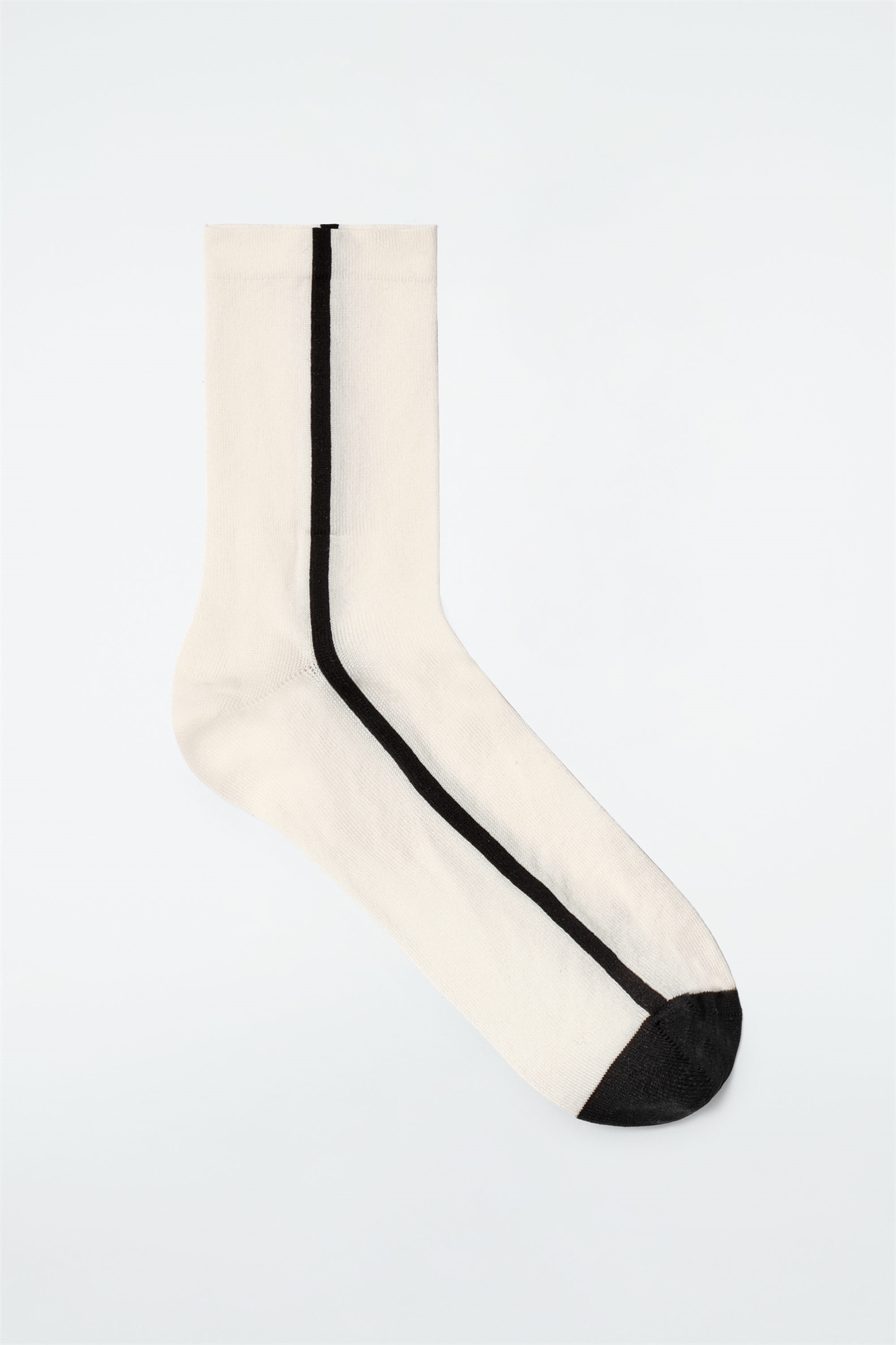 Эти носки из хлопкового бленда с одной полосой, проходящей по щиколотке, выглядят неброско. Носите их с мокасинами или кроссовками. Материал: 61% хлопок, 38% полиамид (нейлон), 1% эластан. Без учета отделки / Машинная стирка