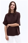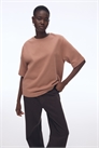 Футболка в стиле бокси из плотного интерлока, изготовленного из смеси хлопка. Свободный крой с горловиной, спущенными плечами и рукавами, заканчивающимися чуть выше локтей.