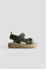 Сандалии из ткани скуба с регулируемыми ремешками из гросгрейн, застегивающимися на крючок и петлю на стопе и вокруг лодыжки. Формованная стелька и рифленая подошва.