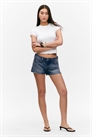 Джинсовые шорты с низкой посадкой и необработанным подолом в винтажном стиле. Классический дизайн с пятью карманами, тонкие боковые разрезы и ширинка на пуговицах. Низкая посадка. Длина мини. Необработанный подол. Боковые разрезы. Классический дизайн с пятью карманами. Ширинка на пуговицах.